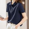 T-shirt Casual da Donna a Maniche Corte con Collo a Revers e Bottoni Estiva