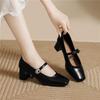 New - High-quality Solid Color Glossy Women's Heeled Single Shoes Thick Heel Square Toe Medium Heel Women's Shoes
