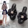 Scarpe da donna, pantofole da donna con plateau, aperte, casual, con punta rotonda, zeppe con nodo a farfalla, sandali da esterno di marca