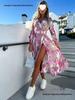 Loose Lace-up V-neck Puff Sleeve Casual Dress Holiday Dress