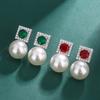 Exquisite Green Diamond Pearl Earrings for Women with Light Luxury High-end Niche Design
