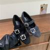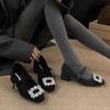Thick heel high heel square head gray rhinestone single shoes women's 2024 new autumn and winter plush Mary Jane Mao shoes