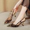 Luxury Pointed Leopard Print Women Pumps Buckle Strap Slingback High Heels Sandals Ladies Temperament Velvet Shoe