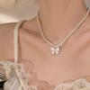 Bow-breasted Pearl Necklace Sweet Niche Design Sense Clavicle Chain Temperament Super Fairy Necklace