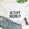 Maglietta da donna con stampa di stelle e luna e streghe, a maniche corte, con scollo a V, ampia, da donna
