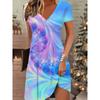 Moda Estiva Abito da Donna con Scollo a V Manica Corta Stampato Abiti Sexy Minigonna
