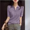 Summer Women's New Polo Collar Short Sleeve Young Mom Summer T-shirt Top Flip Collar Ice Silk Knitted Thin Shirt