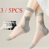 10 Pairs Summer Glass Socks Cute Cartoon Cat Jacquard Socks Summer Transparent Breathable Stockings