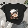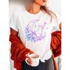Plus Size Casual T-shirt, Women's Plus Floral Moon Print Short Sleeve Round Neck Slight Stretch Top