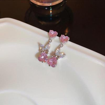Pink Diamond Love Screw Button Earbone Nail Light Luxury Temperament Beautiful Girl Sweet Cool Pink Heart Zircon Screw Earrings