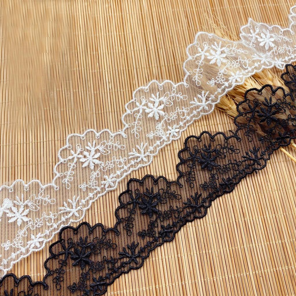 4 Metri 4,3 cm di larghezza Pizzo a rete ricamato a forma di onda bianco e nero abiti da sposa pigiami accessori rifinitura in pizzo