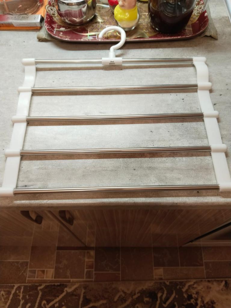 Per i pantaloni ☝️ comodo da appendere. Risparmio di spazio nell'armadio.