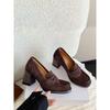 Mocassini neri a punta quadrata pigri a un pedale con tacco alto spesso scarpe in pelle piccola versatili francesi Mary Jane scarpe singole da donna tacco medio
