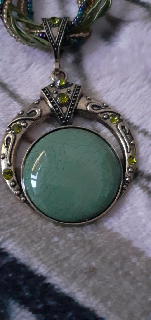 La collana è carina, solo che c'è scritto che l'inserto è una pietra naturale e non ho letto altro su di essa, ma in realtà è plastica e questo non mi è piaciuto, tanto più che la collana è fatta a mano.