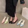 Borsa da socialite con temperamento francese, sandali con testa di borsa, scarpe da fata, nuovi sandali a punta singoli primavera/estate 2025, tacchi alti neri