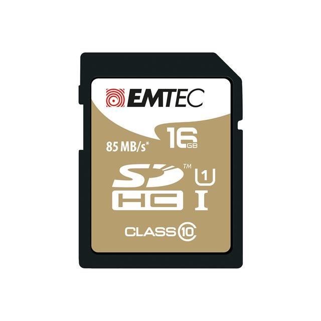 Carte mémoire sdhc 16go emtec cl10 gold+ uhs-i 85mb/s - sous blister