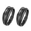 Braided Leather Bracelet popular Men's - Adjustable Black Punk Style Layered Wristband For Casual Party Wear