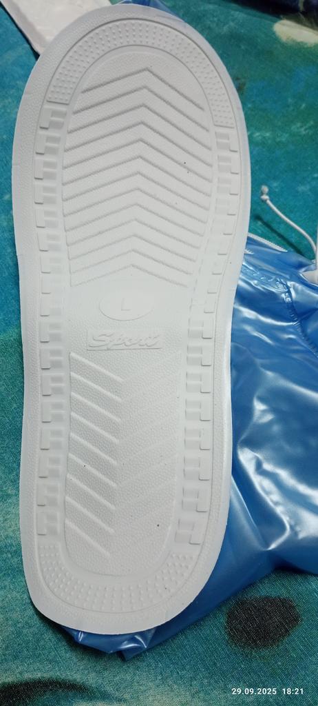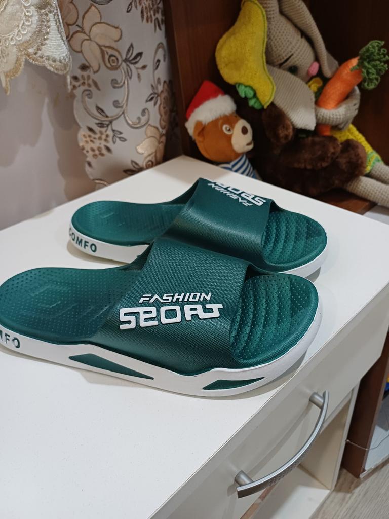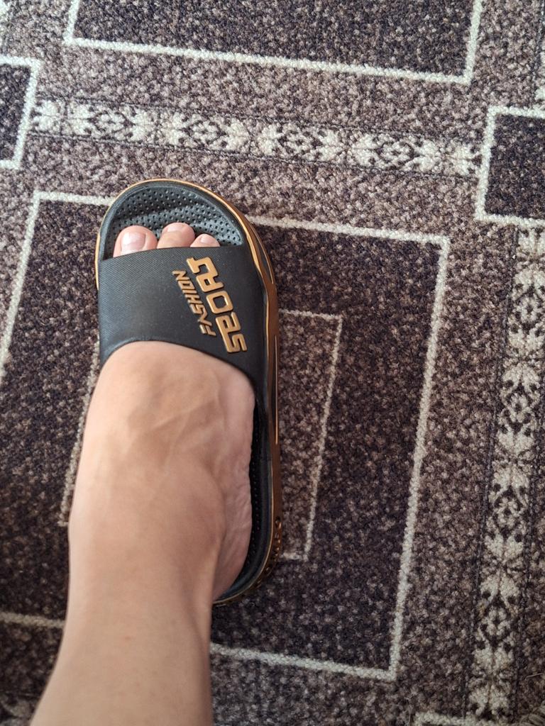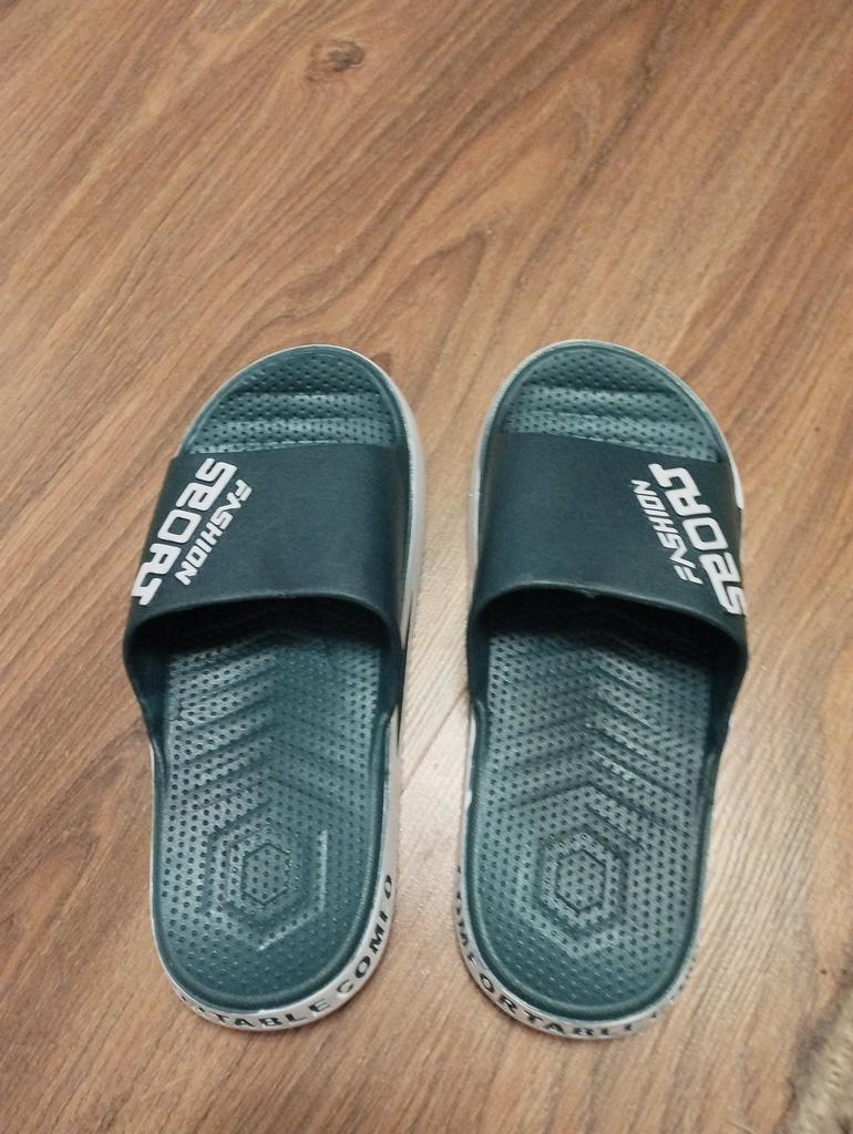 Ciabatte stampate, in gomma, senza cuciture. Corrisponde completamente all'immagine. L'odore è andato via velocemente. Per piede largo. Grazie.