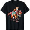 German Shepherd Riding Dinosaur T Rex Tshirt for Men Rainbow T-Shirt Cotton Design Tops T Shirt Faddish Mens T Shirts