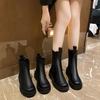 Simple black British style platform Martin boots women's 2025 new autumn and winter popular thick heel casual thin short boots