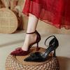 Pointed toe with high heels, thin heels, sexy 2025 new red large size hollow single shoes, French bag head sandals