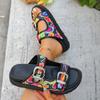 European and American large-size flat-bottomed slippers 2025 summer new thick-soled belt buckle round head women's one-character sandals