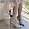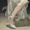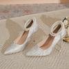 Silver high-heeled shoes women's 2024 new pointed-toed thin-heeled pearl shallow mouth word with high-end wedding shoes single shoes women