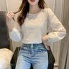 Moda Nuove Maniche Lunghe Casual Camicie Donna Pizzo Top Elegante Collo Alto Slim Fit Donne Larghe Camicette Vintage Solido Fiori Chiffon Camicia Donna 26363