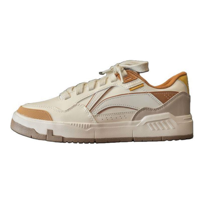 Li Ning Common Anni '80 Comode Classiche Casual Resistenti Antiscivolo Scarpe da Skate Basse Uomo Sneakers Bianco Marrone AGCU157-4