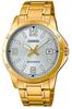 MARKA: CASIO MODEL: LTP-V300G-7AUDF MECHANIZM: Precyzyjny kwarcowy z trzema wskazówkami: godzinową, minutową i sekundową TARCZA: Analogowa z subtarczami: wskaźnik daty, dnia tygodnia i czasu 24-godzinnego KOPERTA: Okrągła, wykonana z wysokiej jakości stali szlachetnej SZKIEŁKO: Mineralne, odporne na zarysowania BRANSOLETA: Segmentowana stal szlachetna WODOSZCZELNOŚĆ: WR (Water Resist) - odporny na zachlapania FLUORESCENCJA: Tak, wskazówki ANTYALEGRICZNY: Tak – nie zawiera niklu, bezpieczny dla skóry