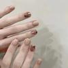 Manicure Fototerapia Pura Fatta a Mano Caramello Castagna Unghia da Indossare Prodotto Finito Patch Riutilizzabile per Unghie per Mostrare Bianchezza