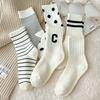 Women Socks Autumn Simple Casual Black White Striped Pile Socks For Girls Breathable Middle Tube Letter Embroidery Cotton Soft