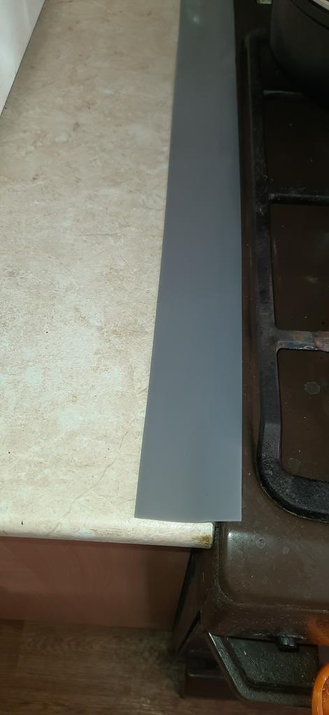 Sembra ottimo, ho tagliato un po' perché era più lungo. Mi piace che tra il piano cottura e il piano di lavoro non cadrà niente, come prima.