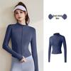 Women Running Zipper Sportswear Skinny elasticity Solid Colour Long Sleeve Fitness Breathable Yoga coat