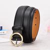 Belt Women'S Leather Belt, Women'S Round Buckle Cowhide Belt, Belt Women'S