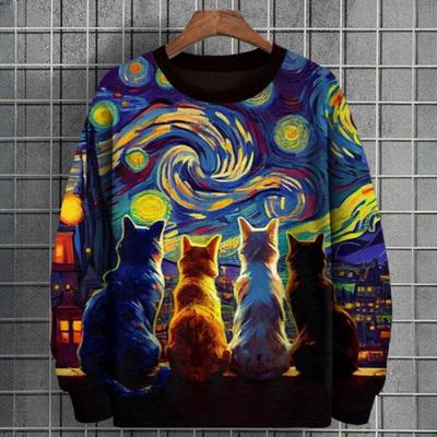 Felpe con animali per uomo, maglietta a maniche lunghe, top con stampa animalier con pittura a olio 3D, pullover, abbigliamento oversize da uomo