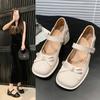 Silver single shoes women's 2025 new with skirt spring light mouth thick heel bow grandma Mary Jane shoes small leather shoes
