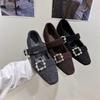 Mao Mao shoes thick heel rhinestone single shoes women's autumn and winter new one-word buckle square head velvet Mary Jane cotton shoes
