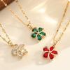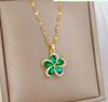 Collana con Ciondolo Fiori Zircone Verde Acciaio Inossidabile Per Donne Nuovo Lusso Catena Fortunata Ragazze Regali Gioielli Compleanno
