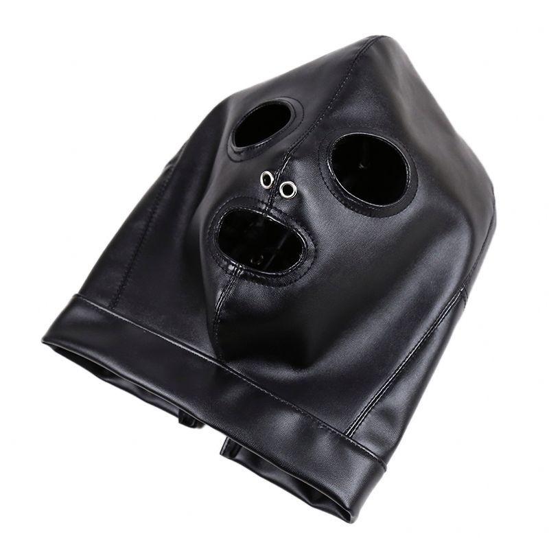 Sexy Cappuccio Bondage in Pelle Maschera Integrale Cappuccio Feticcio Cosplay Festa Giochi Maschera Misteriosa Roleplay per Adulti Costumi Esotici Copricapo