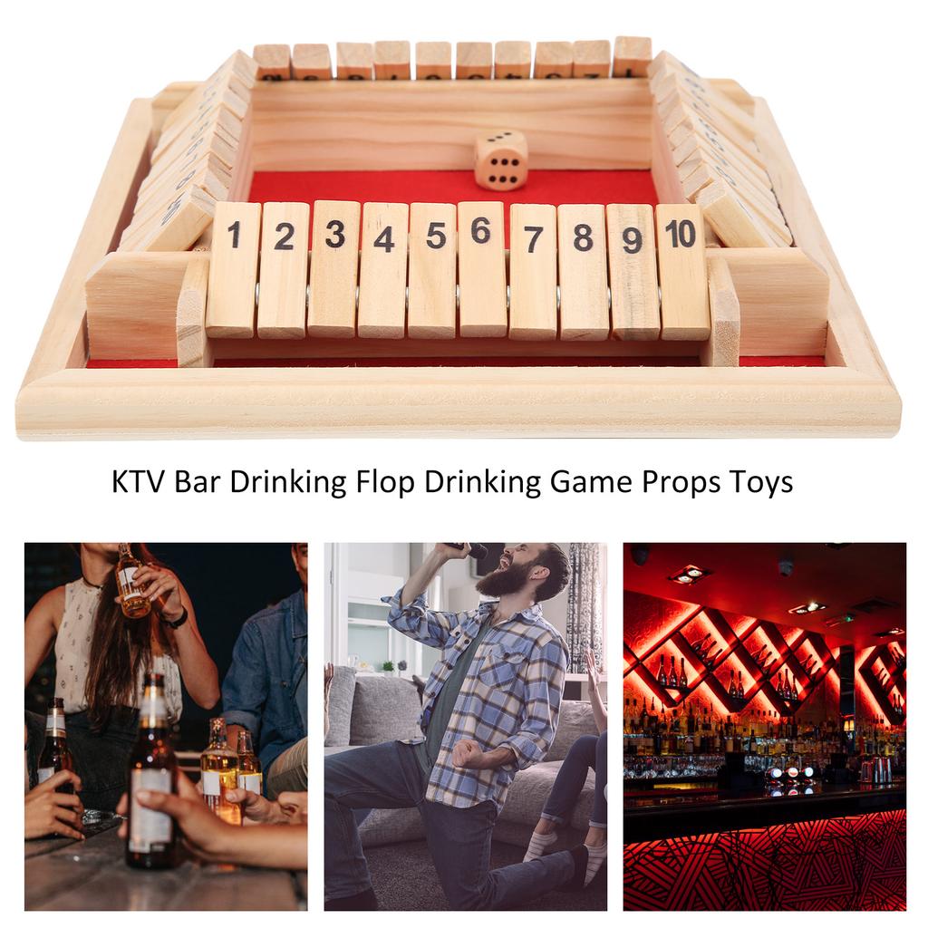 Wooden Shut the Box Dice Game 4 Sided 10 Numbers Board Tabletop Pub Game for Kids Adults