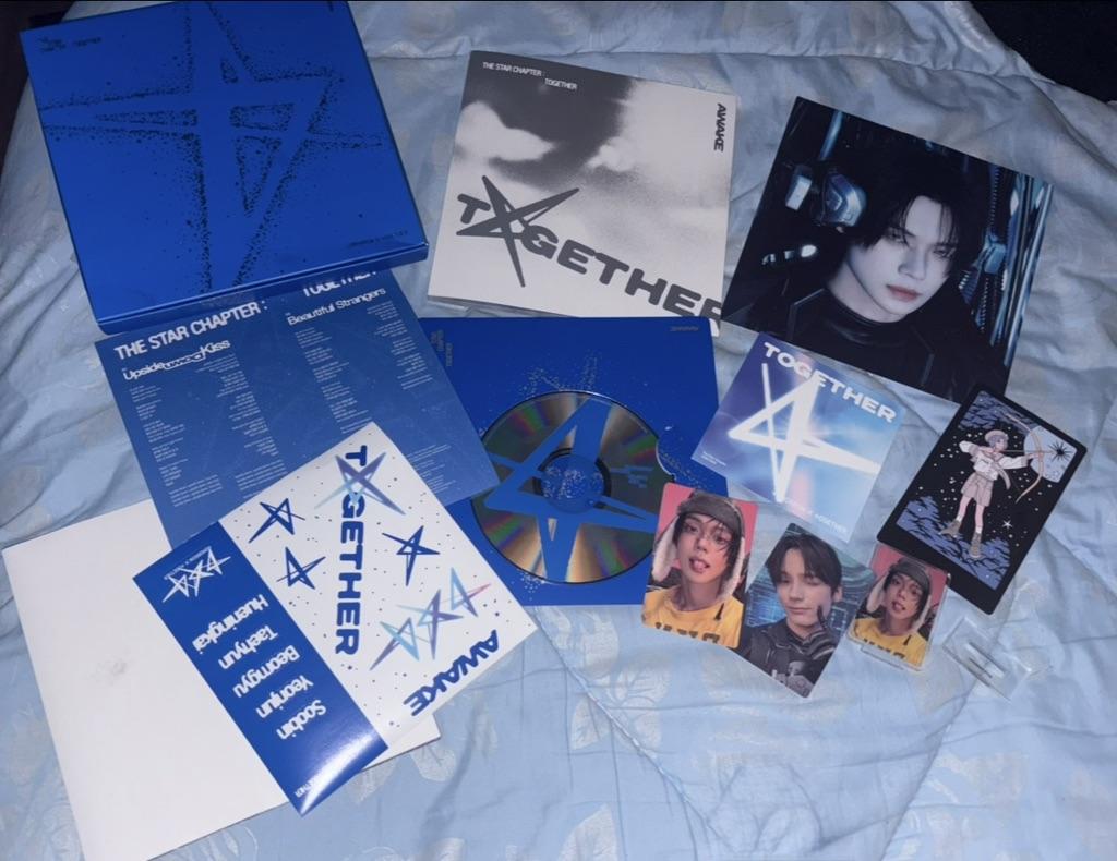 Il mio album dei TXT è arrivato ieri! 🥰 Sembra fantastico, uno degli angoli è un pochino ammaccato ma nel complesso, tutto il resto è perfetto! 😍 Adoro le mie pull e il carino regalo per il preordine! 🥰 Grazie mille per l'album! 🤗
