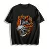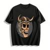 Spring and Summer Loose T-shirt Pure Cotton Unisex Top Bull Skull Fire Helmet Graphic T-shirt Breathable Print Men's Top