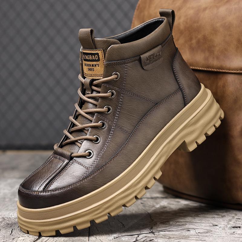 2024 Men's Mid-Cut Martin Boots with Velvet for Autumn and Winter – Trendy Men's Footwear