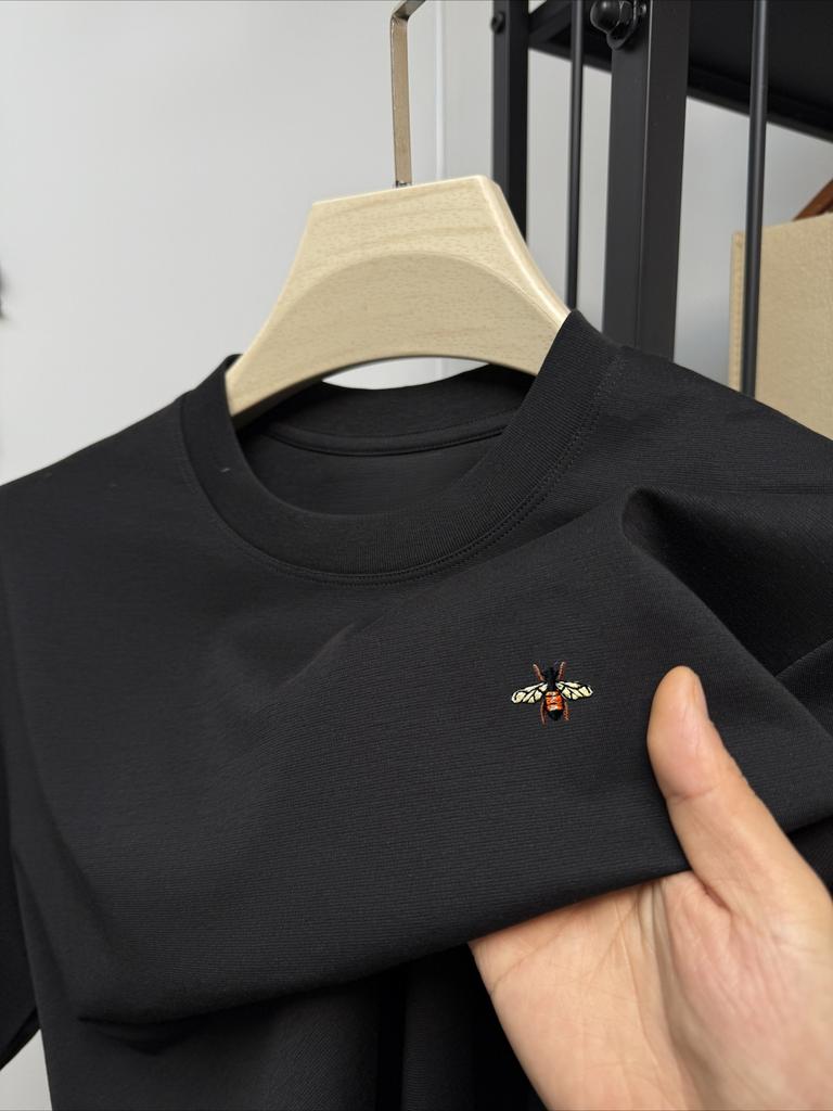 New high-end brand cotton men's round neck short sleeve T-shirt summer new fashion bee printed boutique Korean style top