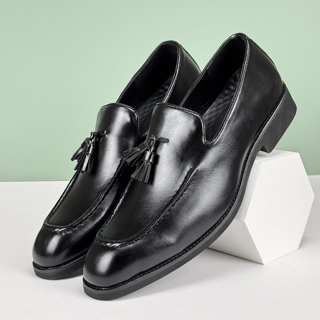 Fashion Men Formal Leather Shoes British Tassels Loafers Pointed Toe Dress Non-Slip Business Casual Red Wedding Office Shoes
