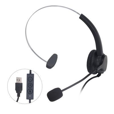 USB Headset Noise Cancelling Adjustable Volume Headband Single Ear Wired Computer Headphone with Mic