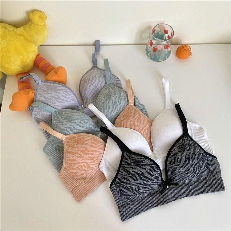 Zebra Print Teenage Bra Wire-Free Thin Breathable Seamless Push-Up Women's Underwear