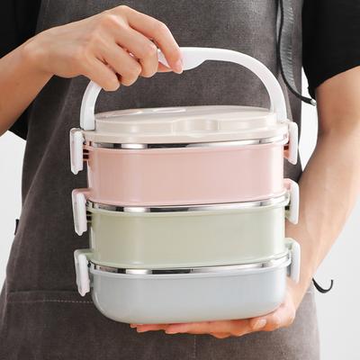 1 set 800/1600/2400ml Lunch Box 1/2/3 strati con manico impilabile termico in acciaio inox contenitore per alimenti freddi e caldi forniture per ufficio