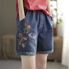 Vintage Style Big Pocket Denim Shorts Female Summer Fashion Embroidery Casual High Waist Short Pants Women 2025